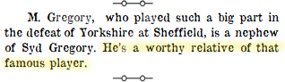 Looker On, The Australian’s Visit to Sheffield, Sheffield Daily Telegraph (Yorkshire), Mon 16 Jun 1919, p.8. Syd. Gregory’s 1912 combination
