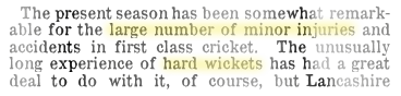 In Quest of the Ashes, The Sun (NSW), Thu 14 Mar 1912, p.1. http://nla.gov.au/nla.news-article222005558, but there is some concern that such surfaces cause injuries,