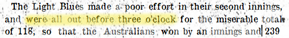 Cambridge University v. Australians, The Scotsman (Midlothian), Sat 24 May 1919, p.11. allowing us all to retire to the pavilion