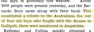 William H. Hammer & Co, Dr Barnardo’s Homes Australasian deputation, ca. 1892. , 1892, postcard, https://trove.nla.gov.au/work/165363839 . This constituted a tribute to the Australians, for, out of four old boys from the charitable home who fought with the Anzacs in Gallipoli, three were mentioned in despatches