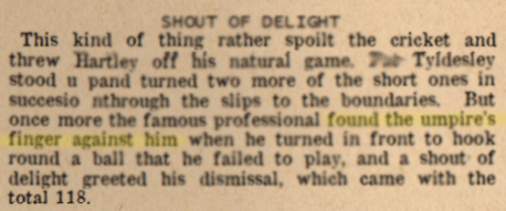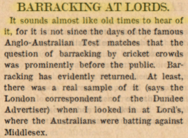 Barracking at Lords, Dundee Evening Telegraph (Angus), Tue 27 May 1919, p.10. –much to the chagrin
