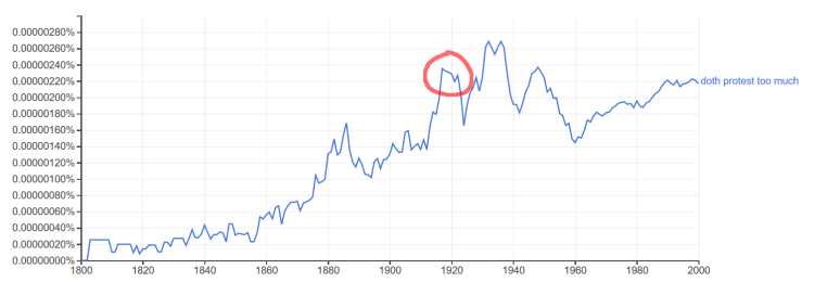 Obviously this line from Hamlet would be well known at the time. The NGram above supports its use here, as 1919 was one of the times it was most popular as a saying as I heard one man complete his outrage with a note of consolation