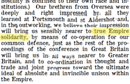 Australians in Arrears, Sheffield Daily Telegraph (Yorkshire), Wed 28 May 1919, p. 6. . In a display of true Empire solidarity