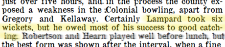 The Australians’ Tour, The Sportsman (London), Thu 29 May, 1919, p.2. . Allie Lampard’s six wickets received some criticism; some saying he owed most of his success to good catching