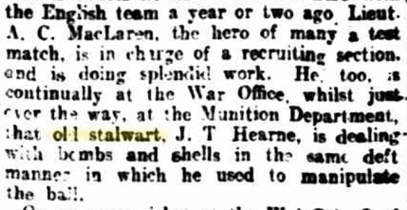 Australian Imperial Forces v. Middlesex, The Field (London), Sat 31 May 1919, p. 646. Young Jack Hearne