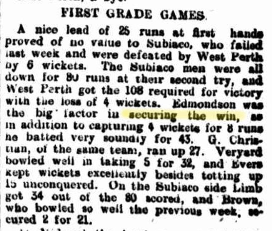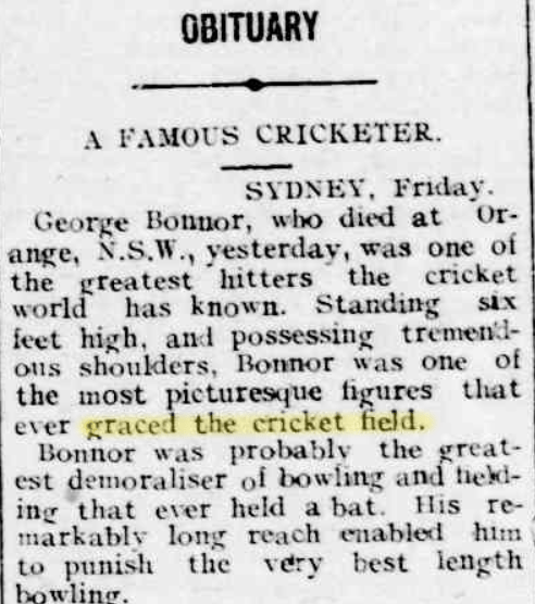 Mid-on, Cricket, Western Mail (WA), Sat 13 Jan 1912, p. 29. http://nla.gov.au/nla.news-article37412789 , but a remarkably fine display of coolness and skill, splendidly representative of Colonial grit saw