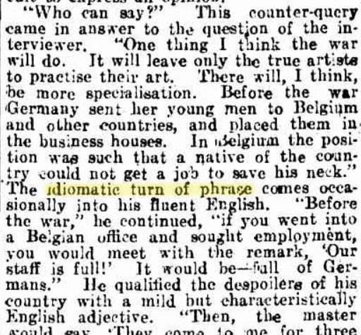 Flashes and Glances, Star Green ‘un (Yorkshire), Sat 24 May 1919, p. 1. , to use an idiomatic turn of phrase)