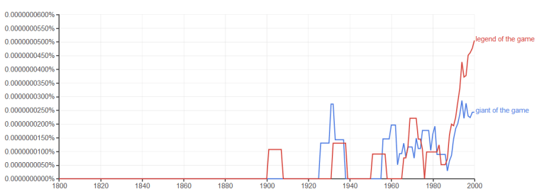 Originally I wanted to use ‘giants’ of the game, but this is definitely anachronistic. The google Ngram shows this popped up a few times not long after, but doesn’t become a common phrase until the 1960s. Likewise, ‘legend of the game’. Using ‘legend’ in the sense to refer to a great individual, as opposed to something or someone mythical, does not really come into use until the latter half of the 20th century. The phrase ‘legend of the game’ does exist from the time, but it is used in the mythical sense ‘the length bowler may shortly be a legend of the game’. Observer, Test Match Bowling, The Argus (Vic), Tue 9 Dec 1924, p. 21. http://nla.gov.au/nla.news-article2082891. The phrase ‘legend in one’s own lifetime’ first appears to describe Florence Nightingale in 1918 when Giles Lytton Strachey wrote in Eminent Victorians ‘she was a legend in her lifetime, and she knew it’. The phrase ‘living legend’ came into the popular vernacular in the USA in 1939 when Jack Dempsey, Cordell Hull, Diego Rivera, Fiedling H. Yost, The ‘lost’ Apaches of northern Mexico, and D.B. MacRae were all described as such. Gary Martin, A Legend In One’s Own Lifetime, The Phrase Finder, United Kingdom, 2019, https://www.phrases.org.uk/meanings/a-legend-in-one’s-own-lifetime.html (accessed 12 Apr 2019). In the end ‘doyens of the English XI’ was used as I could find several contemporary references, including the one shown which is about the cousin of Jack Gregory, Syd Gregory, in almost the exact same context. , Wilfred Rhodes