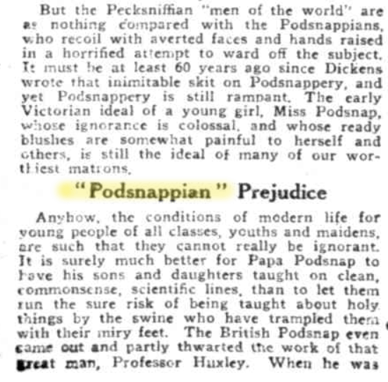 Initially I had used ‘parochial’, but at this time that word is exclusively used in a religious context. Podsnappian, from Dickens’ Mr. Podsnap, meaning self-satisfied or blinkered, was in relatively common usage in Australia during the war. Mrs. Edgworth David, Red Plague, The Globe and Sunday Times War Pictorial (NSW), Sat 3 Jun 1916, p. 12. http://nla.gov.au/nla.news-article100573457 –gave an ovation