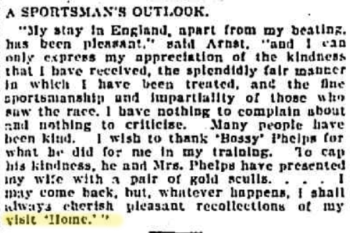Sport Salad, Saturday Referee and the Arrow (NSW), Sat 19 Oct 1912, p. 4. http://nla.gov.au/nla.news-article133435806 .