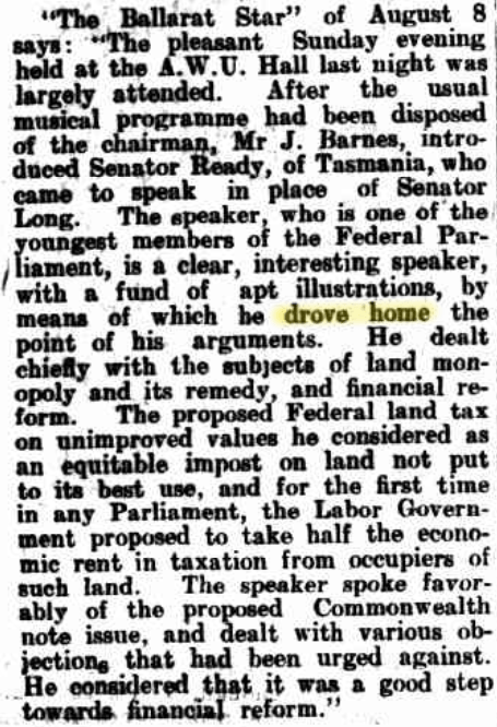 Personal, Daily Telegraph (Tas), Thu 11 Aug 1910, p. 5. http://nla.gov.au/nla.news-article152235136 precisely why we were here