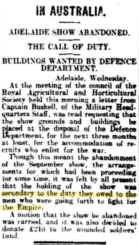 In Australia, Barrier Miner (NSW), Wed 28 Jul 1915, p. 4. http://nla.gov.au/nla.news-article45334594 .