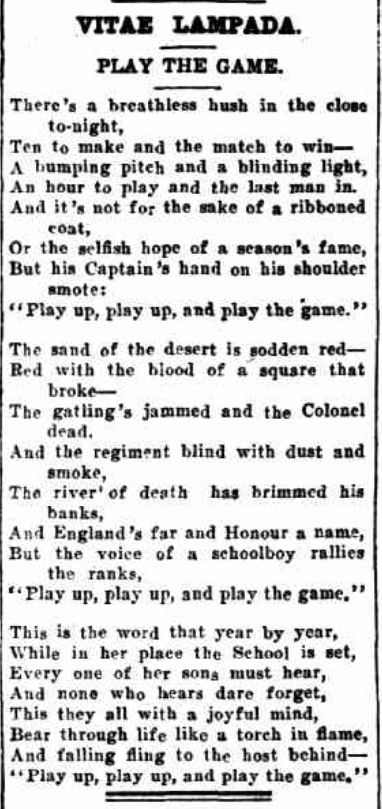 “Play up! play up! and play the game!”